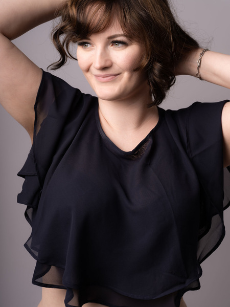| Haare: | brünett, schulterlang, glatt |