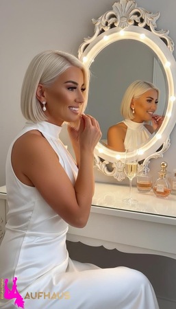 Haare:blond, kinnlang, glatt