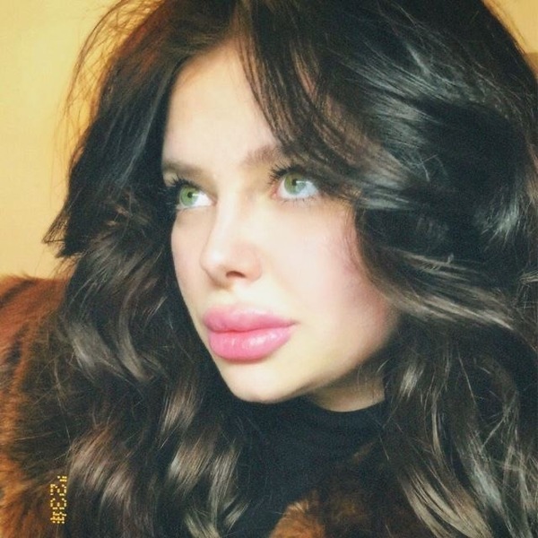 Haare:brünett, rückenlang, wellig
