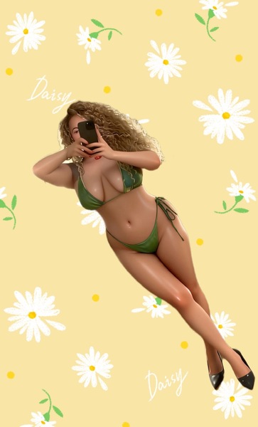 Haare:blond, rückenlang, gelockt