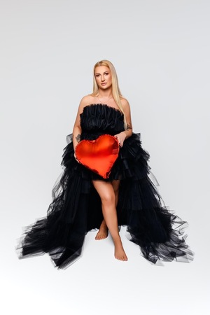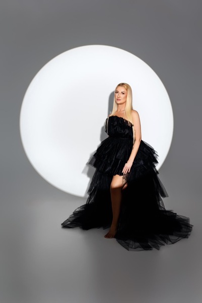 Haare:blond, rückenlang, glatt